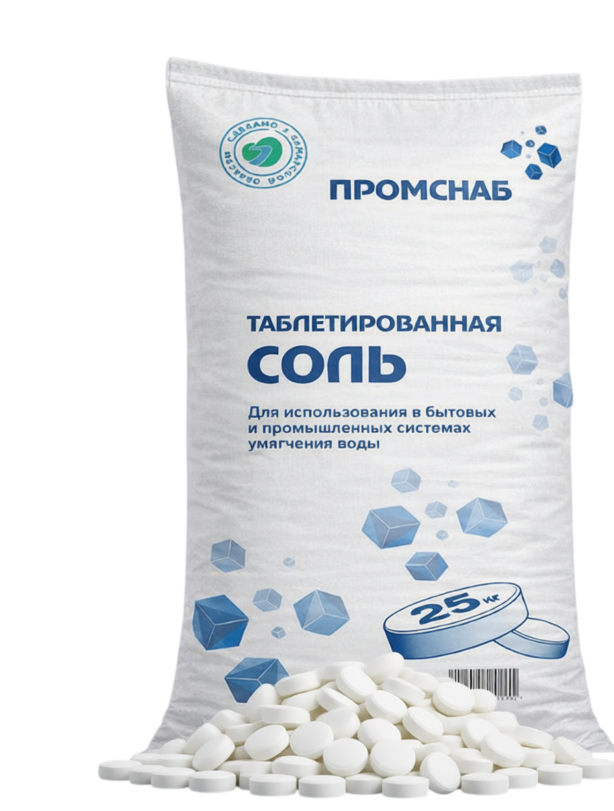 Таблетированная соль «Промснаб» производится из пищевой выварочной соли сорта «Экстра» методом прессования
